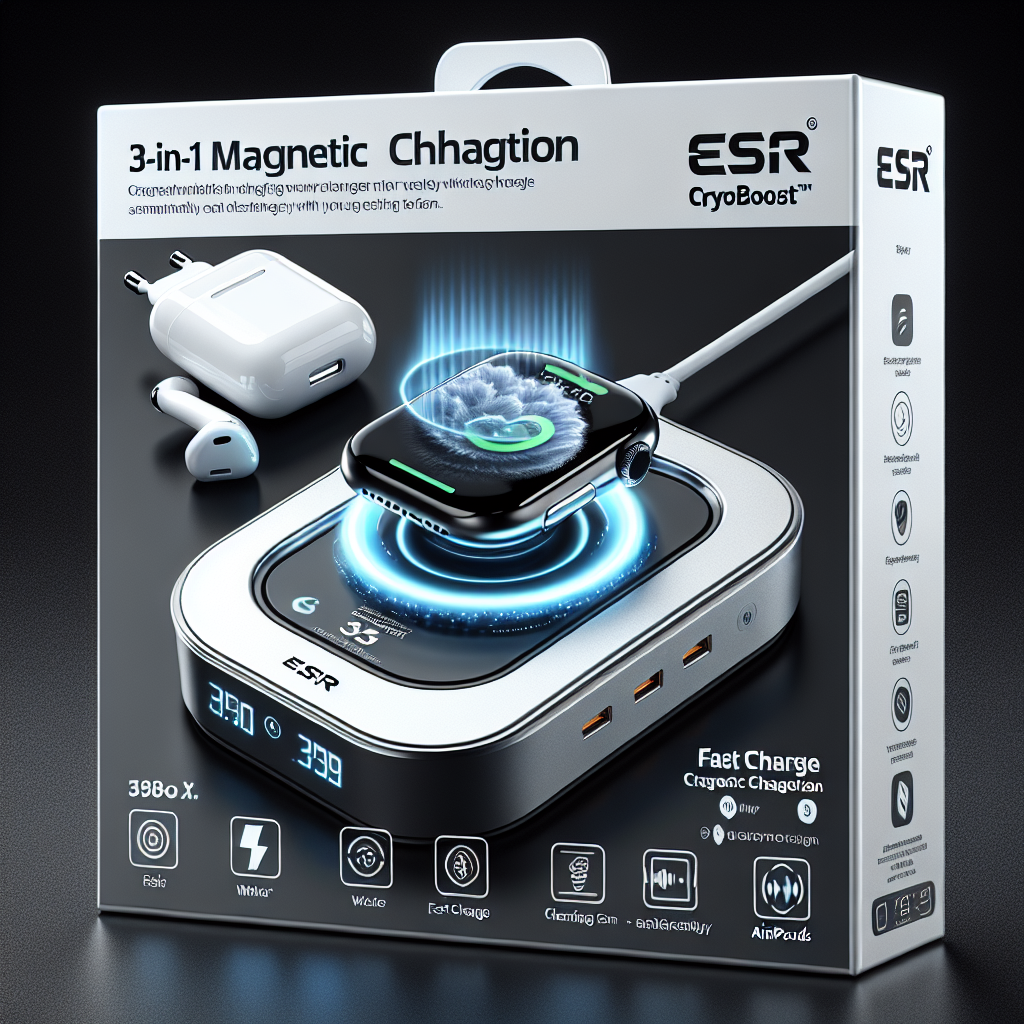 この「ESR CryoBoost® 3-in-1 マグネット充電ステーション」は、そのニーズを完璧に満たす製品です。